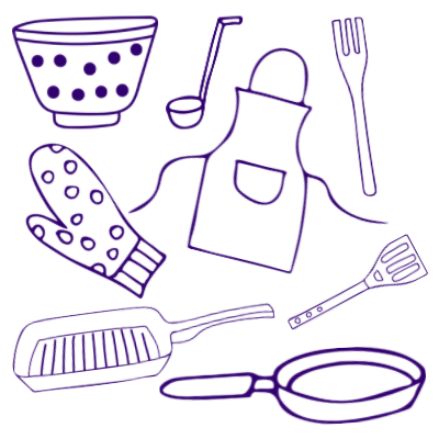 Any pots, pans or frying pans in a good condition. Along with oven mitts, aprons and any kitchen hand tools, like rolling bins, egg slicers, fruit slicers.