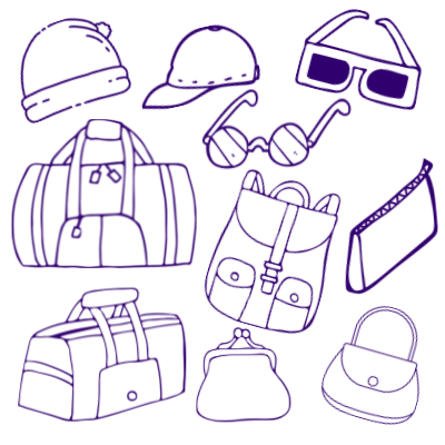 Hats, Caps, Fascinators, Sunglasses, handbags, backpacks, clutch bags, weekend bags and suitcases.