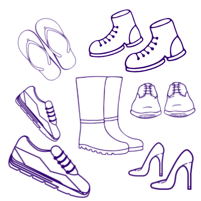 Pairs of shoes in good condition with no splits or holes in the soles. Please include the laces for the shoes and remove any insoles before donation.